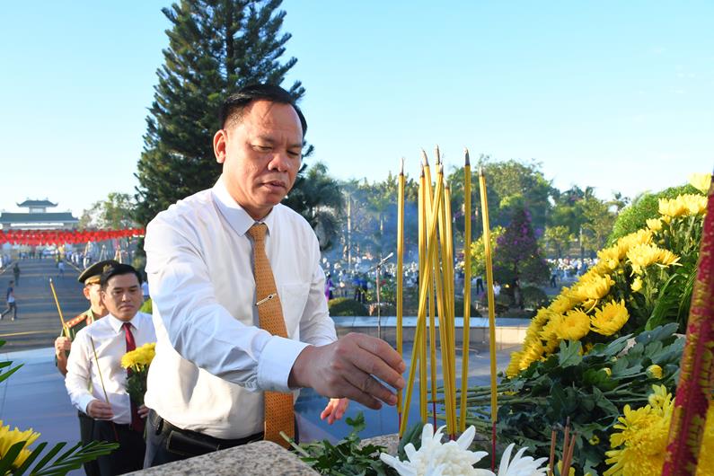 Quyền Chủ tịch UBND tỉnh Võ Tấn Đức dâng hương tại Đài liệt sĩ nghĩa trang liệt sĩ tỉnh.
