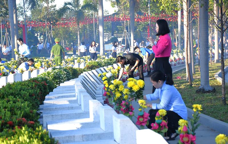 Sau lễ viếng tại Đài liệt sĩ, các đại biểu đã đến thắp hương ở các phần mộ liệt sĩ tại Nghĩa trang liệt sĩ tỉnh.