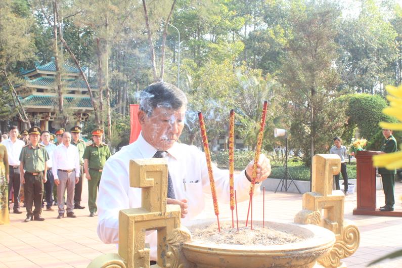 Phó Bí thư thường trực Tỉnh ủy Hồ Thanh Sơn dâng hương tại Nghĩa trang liệt sĩ H.Long Thành