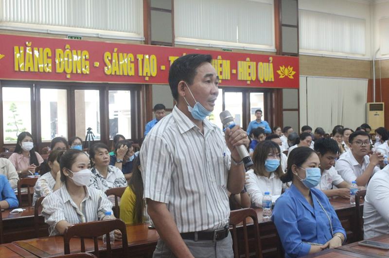 Công nhân lao động đặt câu hỏi tại buổi đối thoại