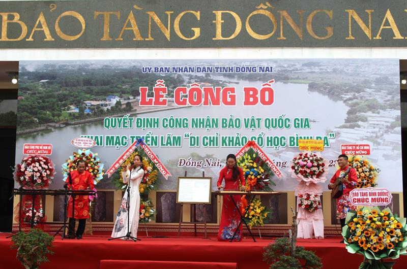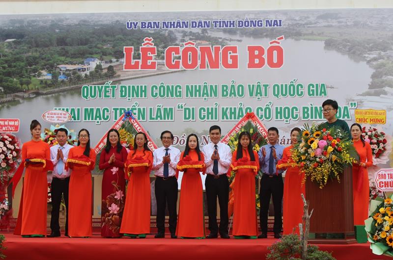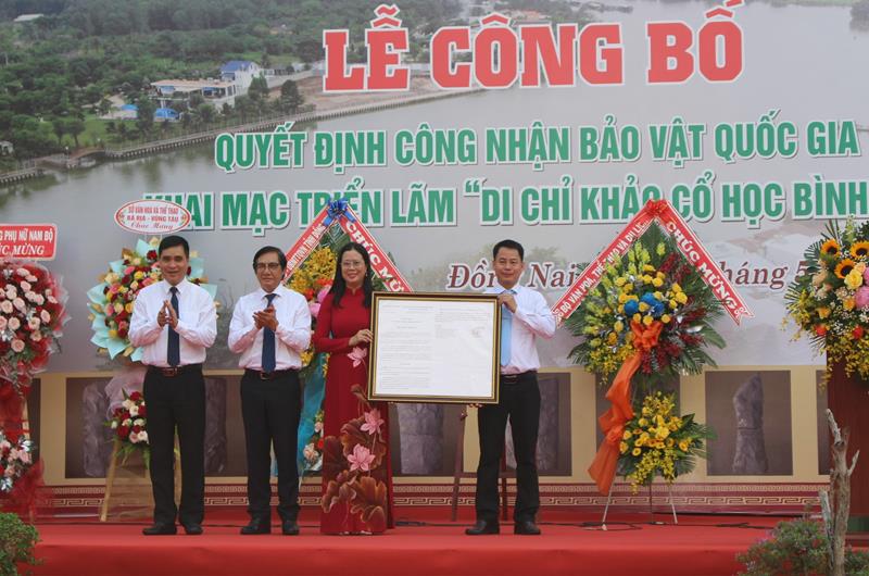 (CTT-Đồng Nai) Ngày 19-5, tại Bảo tàng Đồng Nai, UBND tỉnh đã tổ chức Lễ công bố quyết định công nhận bảo vật quốc gia và khai mạc triển lãm Di chỉ khảo cổ học Bình Đa. Đến dự lễ có các đồng chí: Phạm Định Phong, Phó Cục trưởng Cục Di sản văn hóa; Nguyễn Sơn Hùng, Phó Chủ tịch UBND tỉnh.