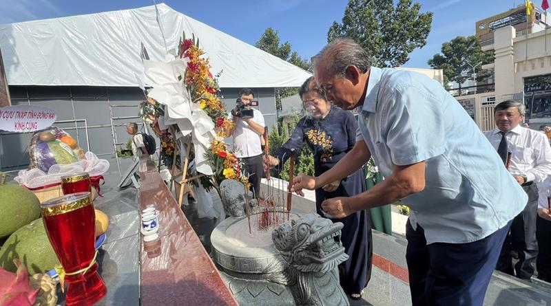 Nguyên Phó Chủ tịch nước Trương Mỹ Hoa và nguyên Phó Thủ tướng Chính phủ Trương Hòa Bình thắp hương trong lễ kỷ niệm.
