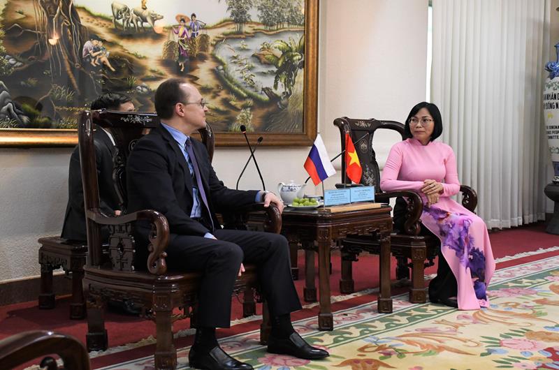 Phó Chủ tịch UBND tỉnh Nguyễn Thị Hoàng trao đổi cùng Ngài Gennady Stepanovich Bezdetko - Đại sứ đặc mệnh toàn quyền Liên bang Nga tại Việt Nam - K.Giới