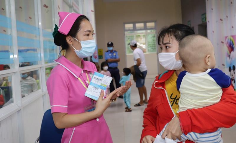 Nhân viên y tế tư vấn cho phụ huynh các gói tiêm chủng dịch vụ cho trẻ