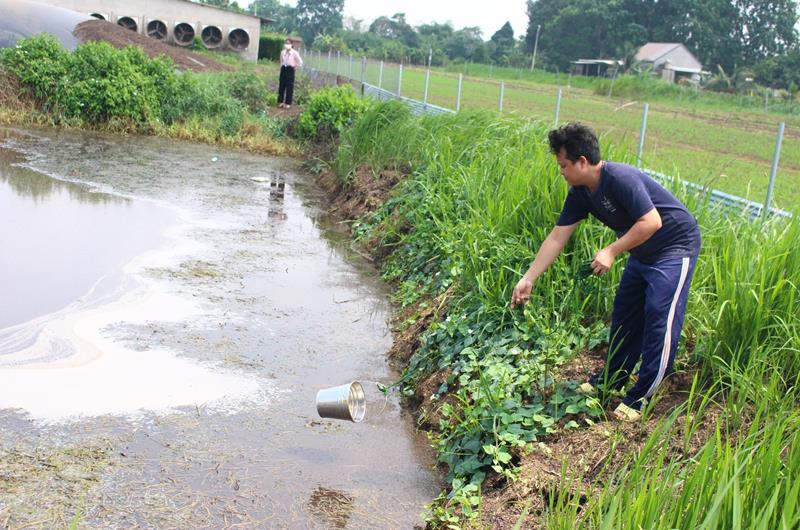 Đoàn kiểm tra lấy mẫu nước thải của trang trại