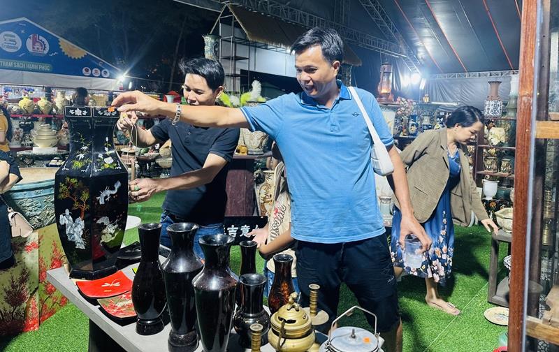 Người dân tham quan gian hàng gốm sứ tại Công viên Biên Hùng dịp Tết dương lịch 2024