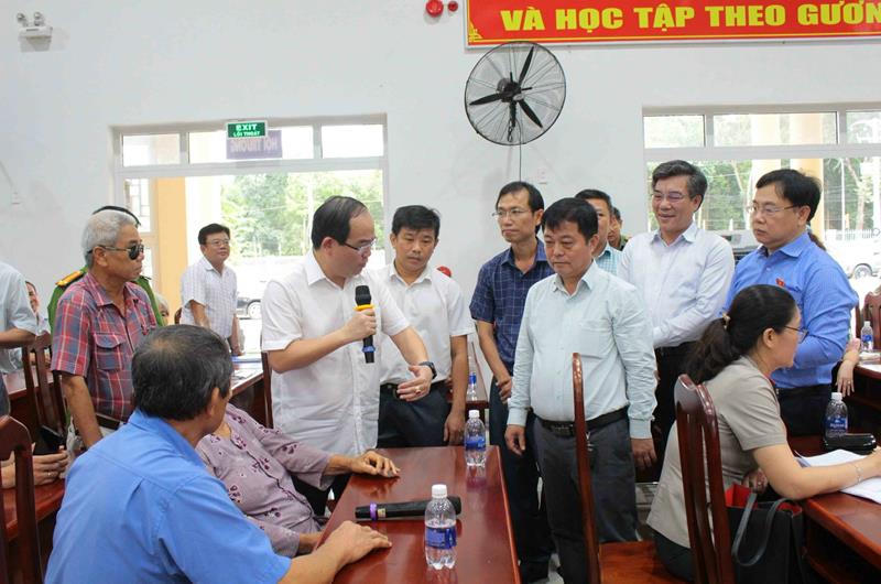 Phó bí thư Tỉnh ủy, Trưởng Đoàn đại biểu Quốc hội tỉnh Quản Minh Cường trao đổi với lãnh đạo các cấp H.Long Thành về việc xem xét, trả lời ý kiến, kiến nghị, khiếu nại, tố cáo của người dân.