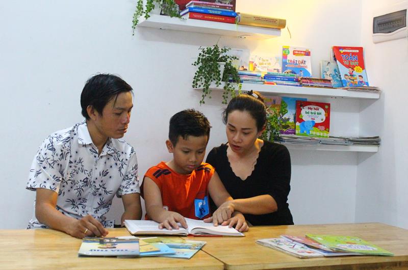 Vợ chồng chị Nguyễn Thái Kiều Tiên, ngụ tại P.Thống Nhất, TP.Biên Hòa cùng nhau hướng dẫn con đọc sách, học bài mỗi ngày