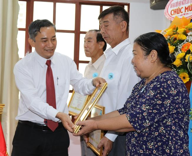 Phó chủ tịch Ủy ban MTTQ Việt Nam TP.Biên Hòa Nho Văn Lịch khen thưởng cá nhân, tập thể thực hiện tốt công tác Mặt trận ở cơ sở trong đó có vận động nguồn lực hỗ trợ người khó khăn