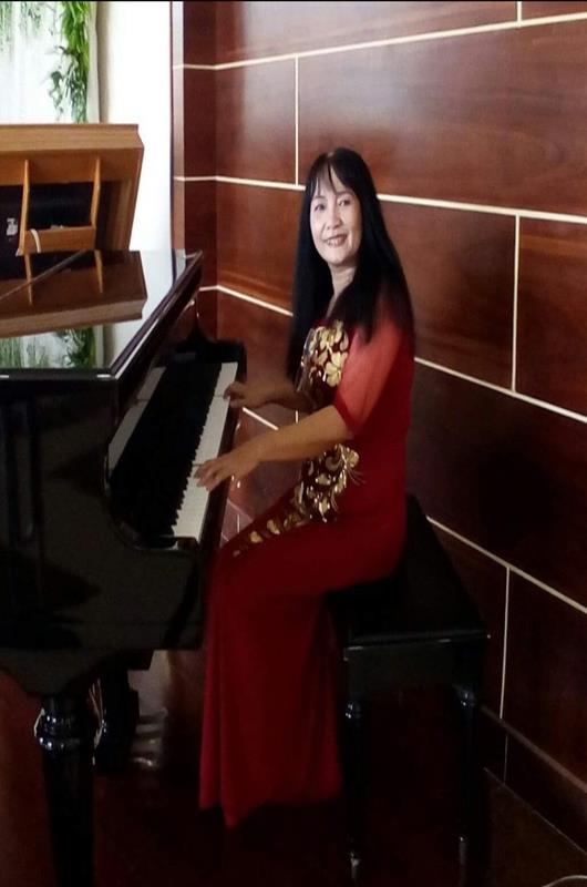 Nghệ sĩ Trâm Oanh bên cây đàn piano
