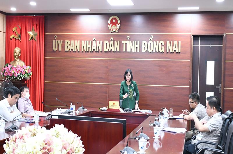 Phó Chủ tịch UBND tỉnh Nguyễn Thị Hoàng phát biểu tại cuộc họp điểm cầu Đồng Nai
