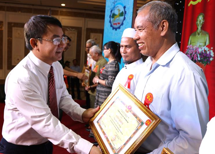 Trưởng Ban Dân tộc tỉnh Nguyễn Văn Khang khen thưởng người có uy tín trong đồng bào dân tộc thiểu số tiêu biểu năm 2023