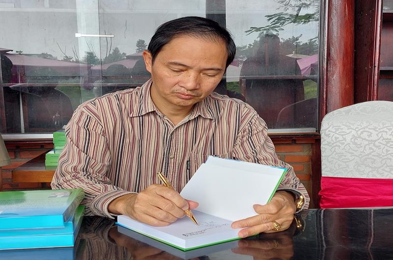 Nhà báo Văn Phong, Trưởng Văn phòng đại diện Báo Sài Gòn Giải Phóng tại Khu vực Đông Nam bộ ký tặng sách nhân dịp ra mắt tác phẩm Lên rừng xuống biển 3