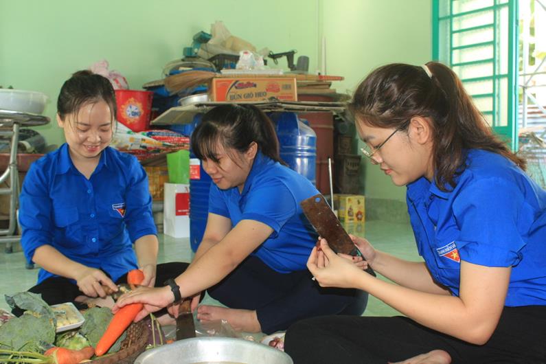 Cán bộ, đoàn viên thanh niên chuẩn bị nguyên liệu thực hiện mô hình Bữa cơm cùng Mẹ Việt Nam anh hùng tại H.Vĩnh Cửu