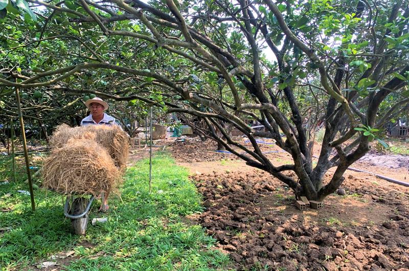 Nông dân tại KDC xã Tân Bình, H.Vĩnh Cửu chuyển hướng sản xuất hữu cơ, tận dụng phế phẩm nông nghiệp như rơm, rác hữu cơ làm phân bón.