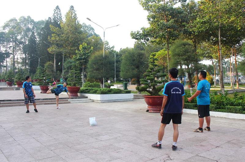 Câu lạc bộ Đá cầu Tam Hiệp luyện tập trong khuôn viên Công viên Tam Hiệp, TP.Biên Hòa