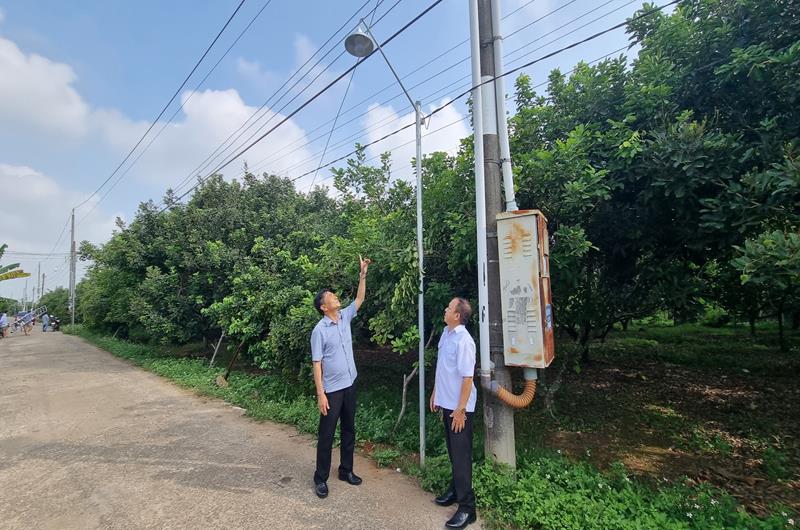 Cán bộ Liên đoàn Lao động H.Thống Nhất cùng người dân bên công trình điện đường thắp sáng tại (tổ 15, ấp Ngô Quyền, xã Bàu Hàm 2)
