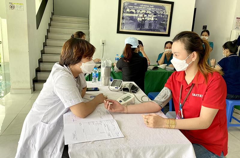 Bác sĩ Trung tâm Kiểm soát bệnh tật tỉnh khám sức khỏe định kỳ cho người lao động của Công ty TNHH Saitex International