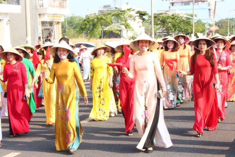 Cán bộ, hội viên phụ nữ, công nhân viên chức lao động huyện Trảng Bom tham gia diễu hành áo dài