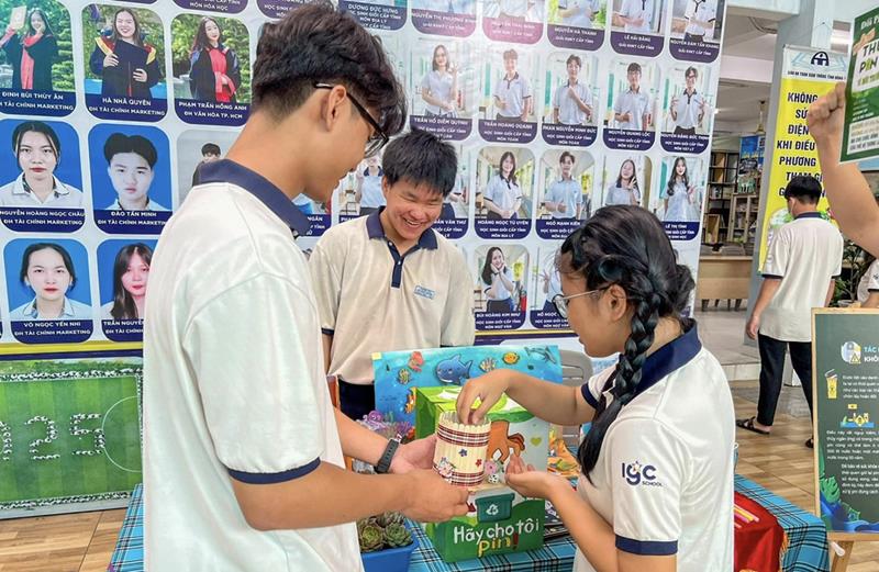 Học sinh Trường THPT Lê Quý Đôn - Tân Mai tham gia dự án đổi pin lấy cây xanh để bảo vệ môi trường. Đây là hoạt động diễn ra trong chương trình chào đón học sinh lớp 10, trước thềm lễ khai giảng 5-9