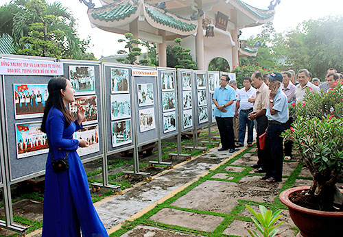 Các đại biểu tham quan triển lãm chuyên đề “Chủ tịch Hồ Chí Minh - lãnh tụ kính yêu của dân tộc Việt Nam” tại Trung tâm Văn miếu Trấn Biên.