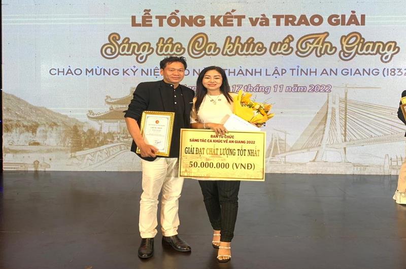 Ca sĩ Uyên Dung (H.Xuân Lộc) được trao giải tác giả có tác phẩm đạt chất lượng tốt nhất cuộc thi sáng tác ca khúc về An Giang