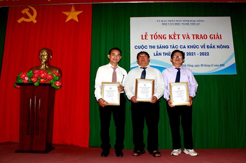 * Hội Văn học Nghệ thuật tỉnh Đắk Nông vừa tổ chức lễ tổng kết và trao giải Cuộc thi sáng tác ca khúc về Đắk Nông lần thứ I, năm 2021-2022. Theo Ban tổ chức, sau 1 năm phát động đã nhận được 70 tác phẩm của 52 tác giả/nhóm tác giả đến từ 25 tỉnh, thành trong cả nước tham gia. Ban giám khảo đã chấm và trao 1 giải nhất, 2 giải nhì, 3 giải ba và 4 giải khuyến khích. Hai nhạc sĩ Đồng Nai đã đoạt giải gồm Trần Tâm (giải ba) và Nguyễn Phương (giải khuyến khích).