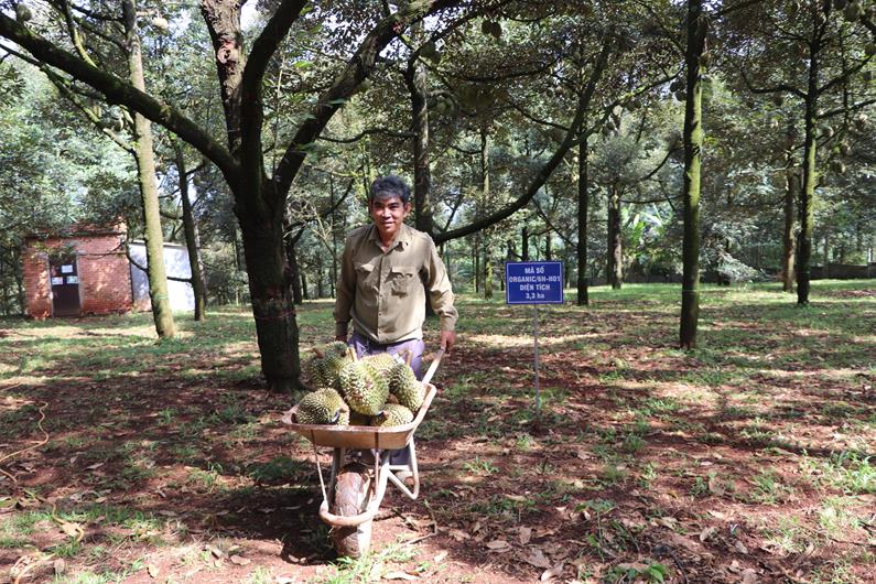 Vườn sầu riêng đã đạt chứng nhận hữu cơ của Tổ hợp tác cây sầu riêng xã Xuân Quế, H.Cẩm Mỹ