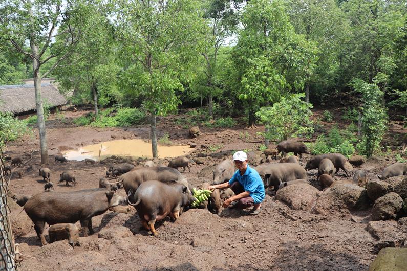 Mô hình nuôi heo bản địa theo chuẩn hữu cơ của HTX Nông trại Dốc Mơ tại xã Gia Tân 3, H.Thống Nhất