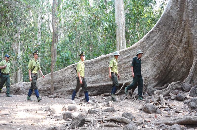 Lực lượng kiểm lâm Vườn quốc gia Cát Tiên đang làm nhiệm vụ bảo vệ rừng