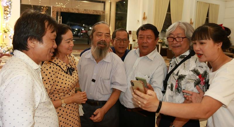 Những nam nhạc sĩ cao tuổi của Đồng Nai trong một lần trao đổi sáng tác cùng đồng nghiệp, khán giả tại chương trình biểu diễn nghệ thuật kỷ niệm Ngày Âm nhạc Việt Nam lần thứ XIV năm 2023