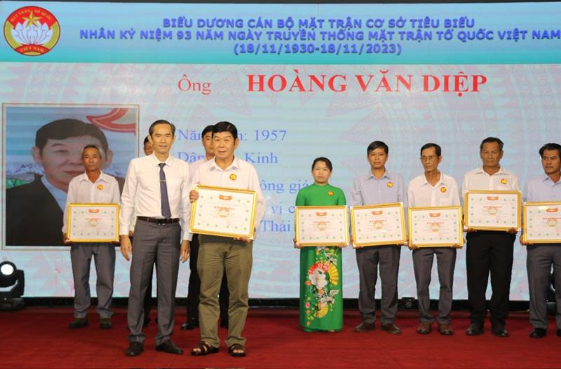 Trưởng ban Công tác Mặt trận ấp Thái Hòa (xã Phú Túc, H.Định Quán) Hoàng Văn Diệp nhận tuyên dương 93 tấm gương làm công tác Mặt trận ở cơ sở tiêu biểu năm 2023 nhân dịp kỷ niệm 93 năm Ngày truyền thống MTTQ Việt Nam