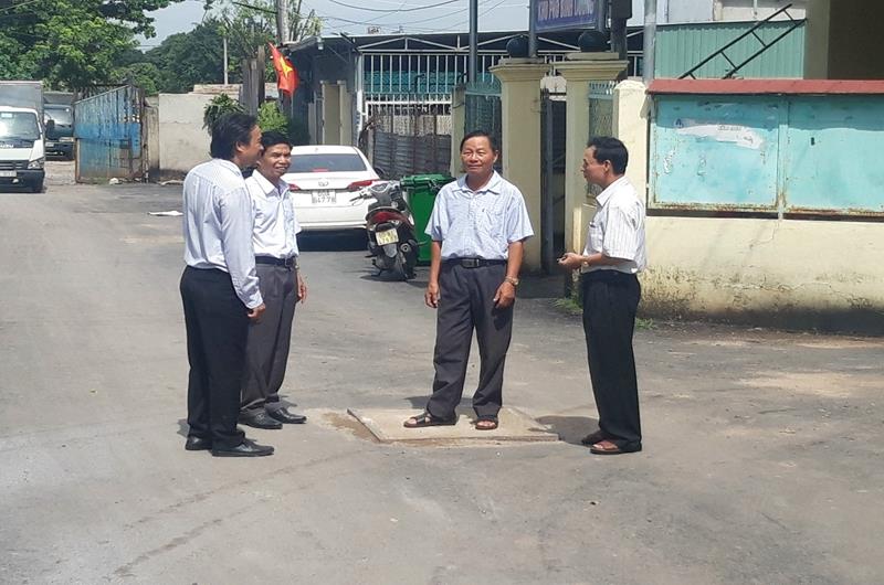 Ông Trương Công Định (bìa phải), Phó Bí thư Chi bộ, Trưởng KP.Bình Dương (P.Long Bình Tân, TP.Biên Hòa) cùng người dân bên còn đường D2 khang trang, sạch đẹp