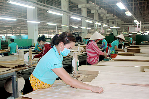 Cải thiện môi trường làm việc sẽ góp phần đảm bảo sức khỏe cho NLĐ và nâng cao năng suất làm việc. Trong ảnh: NLĐ Công ty CP Johnson Wood (KCN Tam Phước) trong giờ làm việc.