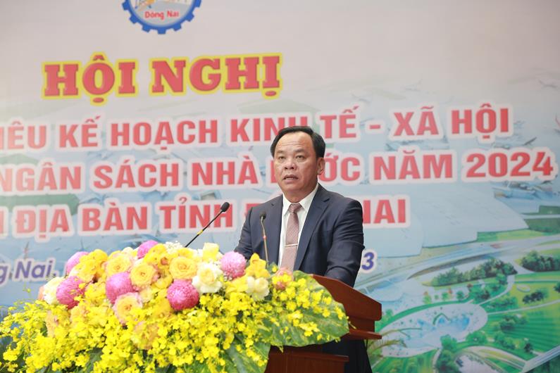 Cụ thể, Đồng Nai phấn đấu hoàn thành 31 chỉ tiêu về kinh tế- xã hội, quốc phòng- an ninh. Một số chỉ tiêu quan trọng về kinh tế là tăng trưởng GRDP từ 6,5 - 7% so với năm 2023; GRDP bình quân đầu người phải đạt 148 triệu đồng/người; kim ngạch xuất khẩu tăng 8%; tổng vốn đầu tư toàn xã hội 124 ngàn tỷ đồng; thu ngân sách đạt dự toán được Chính phủ giao. Toàn tỉnh có thêm 4 xã đạt nông thôn mới nâng cao, 3 xã nông thôn mới kiểu mẫu và 2 huyện hoàn thành nông thôn mới nâng cao. Bên cạnh đó, một số nhiệm vụ khác như tỷ lệ lao động qua đào tạo nghề đạt 68,5%; kéo giảm số vụ phạm tội về trật tự xã hội; hoàn thành chỉ tiêu giao quân do Quân khu 7 giao…