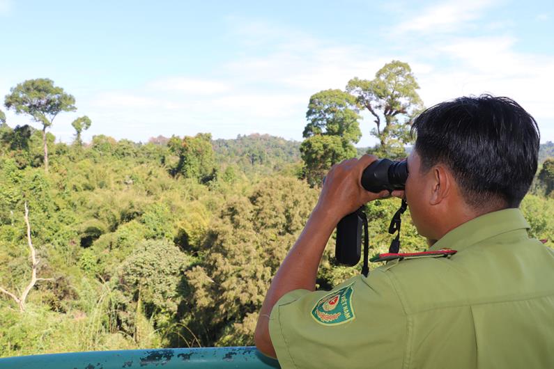Kiểm lâm của Khu Bảo tồn Thiên nhiên - Văn hóa Đồng Nai đang trực gác phòng chống cháy rừng