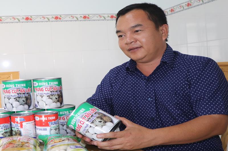 Ông Phạm Văn Thịnh, Giám đốc Công ty TNHH Vương Gia Hưng Thịnh (P.Hố Nai, TP.Biên Hòa) giới thiệu sản phẩm trứng cút ăn liền đạt chuẩn thị trường xuất khẩu