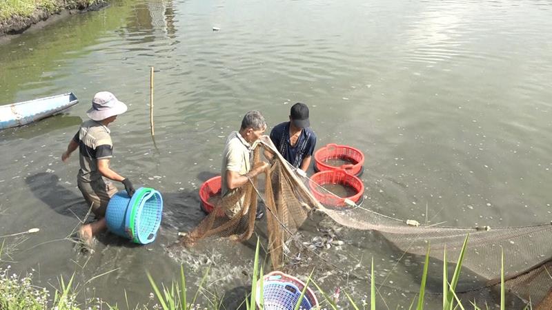 Thu hoạch tôm càng xanh ở xã Trà Cổ, H.Tân Phú