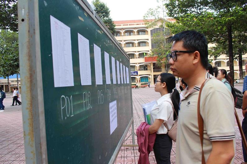 Các thí sinh rà soát thông tin trước khi bước vào Kỳ thi tuyển công chức hành chính tỉnh Đồng Nai năm 2023