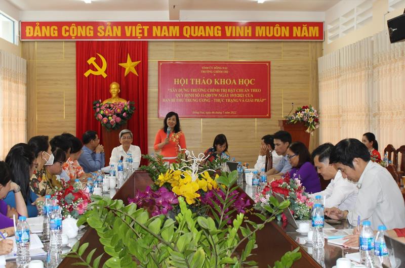 Ngày 6-7, Trường Chính trị tỉnh đã tổ chức Hội thảo khoa học Xây dựng trường chính trị đạt chuẩn theo quy định số 11-QĐ/TW ngày 19-5-2021 của Ban Bí thư Trung ương - thực trạng và giải pháp. Đồng chí Lê Thị Cát Hoa, Hiệu trưởng Trường Chính trị tỉnh chủ trì hội thảo. Hội thảo có sự tham gia của trường chính trị các tỉnh: Bình Thuận, Tây Ninh, các nhà khoa học, giảng viên Trường Chính trị Đồng Nai.
