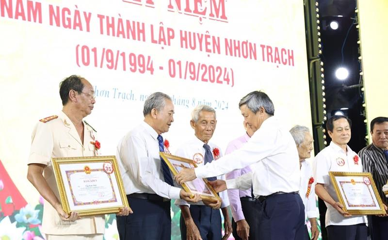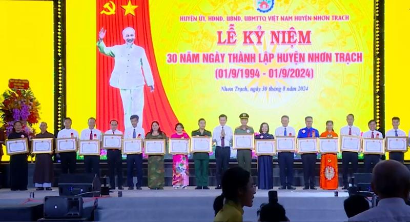 UBND tỉnh cũng đã tặng bằng khen cho nhiều tập thể và cá nhân tiêu biểu có nhiều đóng góp cho chặng đường 30 năm xây dựng và phát triển huyện Nhơn Trạch.