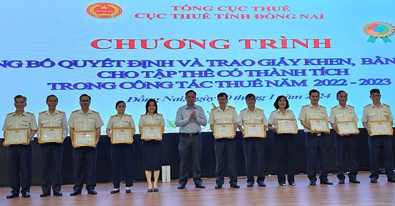 Tại Hội nghị tổng kết ngành thuế năm 2023, 33 tập thể được tuyên dương, trong đó, 26 tập thể ngành Thuế được nhận danh hiệu Tập thể lao động xuất sắc năm 2022 của Bộ Tài chính và Tổng cục Thuế; 5 tập thể được nhận giấy khen hoàn thành xuất sắc nhiệm vụ năm 2023 của Cục Thuế Đồng Nai.