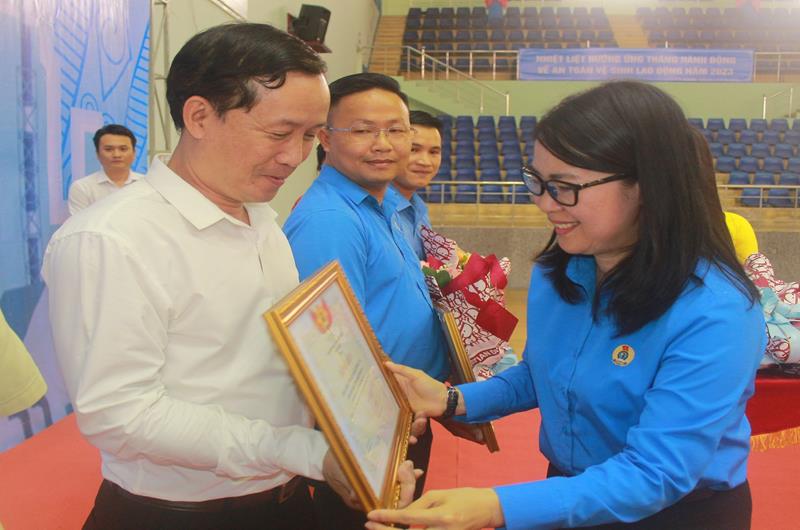 Chủ tịch LĐLĐ tỉnh Nguyễn Thị Như Ý trao bằng khen cho các cá nhân và tập thể tại lễ phát động