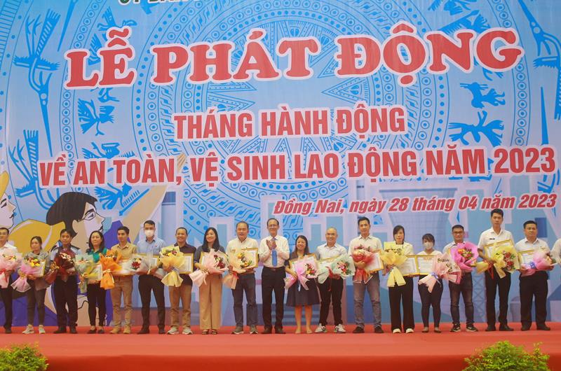 Dịp này, nhiều cá nhân và tập thể đạt thành tích xuất sắc về công tác ATVSLĐ năm 2022 được UBND tỉnh, Tổng Liên đoàn Lao động Việt Nam, Liên đoàn Lao động tỉnh và Sở LĐ-TBXH khen thưởng, tặng bằng khen và giấy khen.