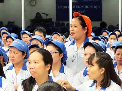 Công nhân Công ty Mabuchi Motor Việt Nam đề xuất giải pháp tiết kiệm chi phí tại hội nghị người lao động năm 2017.