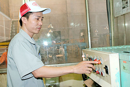 15 năm gắn bó với Công ty TNHH Hòa Bình (TP. Biên Hòa), anh Phan Quốc là công nhân có nhiều sáng kiến được áp dụng vào hoạt động sản xuất của công ty; nhiều lần được công ty khen thưởng. Chia sẻ về sáng kiến mới nhất của mình, anh Quốc cho biết, trước đây, để hoàn thành một sản phẩm ván gỗ trang trí, NLĐ phải trải qua khâu sử dụng keo sữa để gắn và đóng đinh vào bề mặt sản phẩm. Sau đó, tiếp tục thực hiện các bước thủ công xử lý lại để bề mặt được láng mịn, không còn dấu vết của việc tán đinh nhằm đảm bảo yếu tố thẩm mỹ của sản phẩm. Việc làm này mất khá nhiều thời gian, chi phí và công sức. Từ hạn chế này, anh nảy ra sáng kiến đưa keo hotmelt vào sử dụng thay vì đóng đinh sau khi đã thực hiện bước dán keo sữa. Theo anh Quốc, việc sử dụng keo hotmelt chi phí thấp hơn, đảm bảo tính thẩm mỹ cao cho sản phẩm. Sáng kiến này đã làm lợi cho công ty hằng trăm triệu đồng.