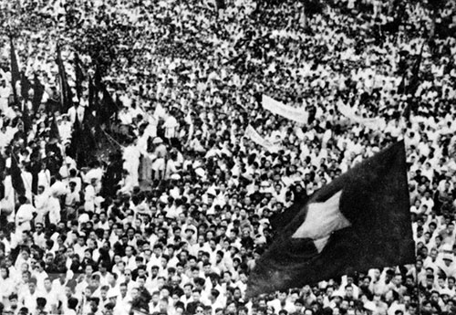Cuộc mít tinh phát động khởi nghĩa giành chính quyền do Mặt trận Việt Minh tổ chức tại Nhà hát lớn Hà Nội ngày 19-8-1945
