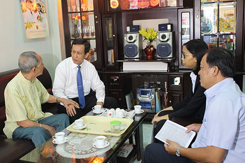 Trưởng ban Tổ chức Tỉnh ủy Phạm Văn Ru đến thăm cán bộ tiền khởi nghĩa cụ Nguyễn Cần