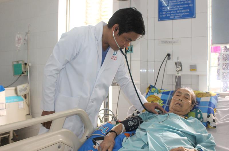 Bác sĩ kiểm tra sức khỏe cho bệnh nhân sau khi thực hiện kỹ thuật điều trị rối loạn nhịp tim bằng sóng cao tần radio