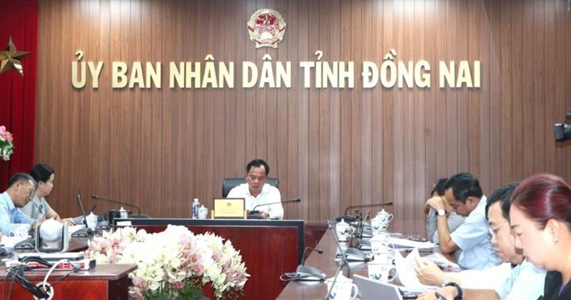 Quyền Chủ tịch UBND tỉnh Võ Tấn Đức chỉ trì hội nghị trực tuyến tại điểm cầu Đồng Nai.